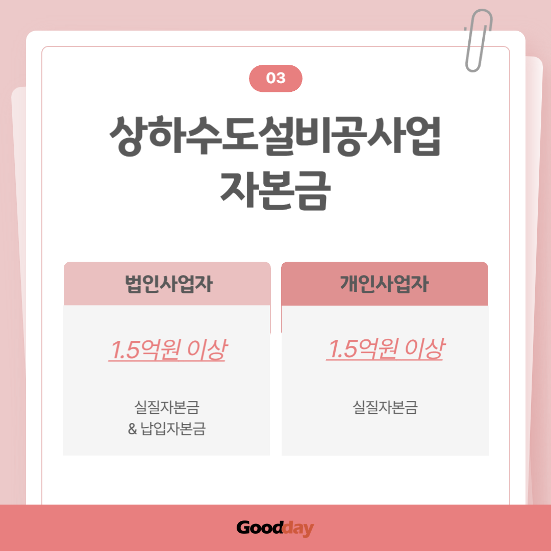 상수도 및 하수도설비공사를 위해서는 기준을 갖춰 면허 등록해야 합니다.
