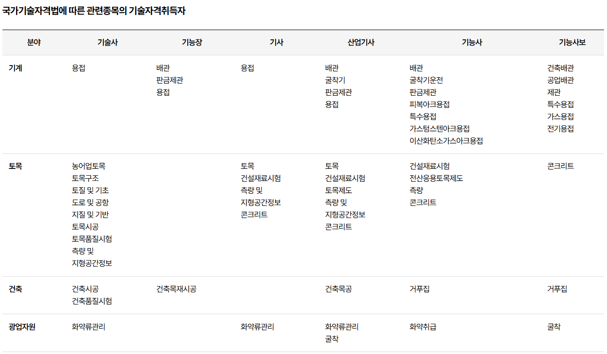 기술자는 기계, 토목 건축 초급 이상 혹은 위와 같은 자격증을 소지한 사람으로